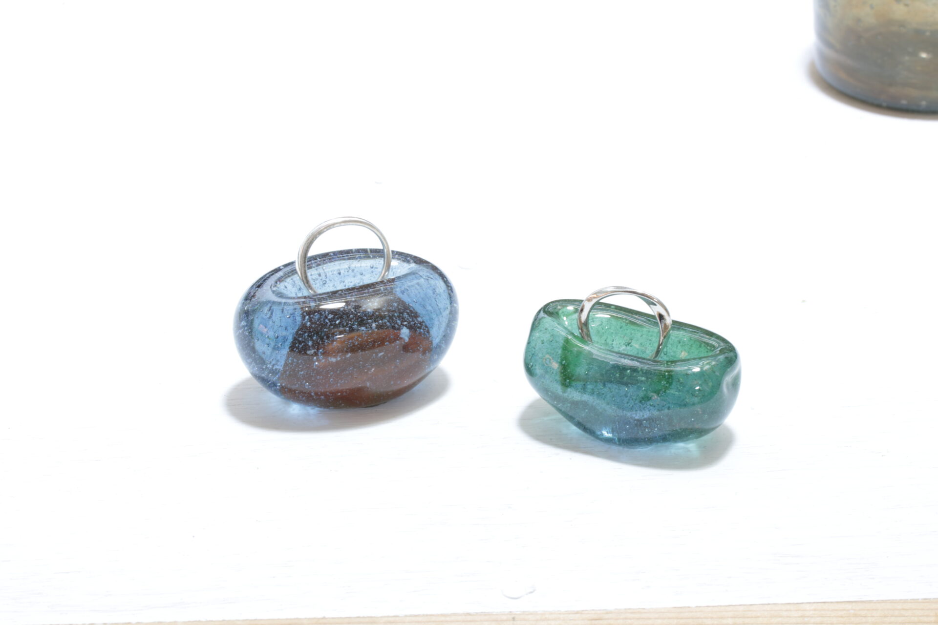リサイクルガラスはエコでもあり、思いがけない綺麗さを演出するここでしか作れない作品となります。