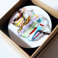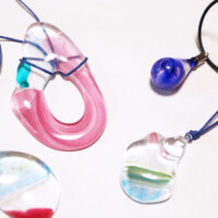 ガラス教室ではアクセサリーとお皿、ピアス、イヤリング、箸置きなどさまざまな作品を制作することができます。