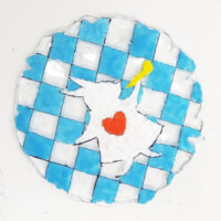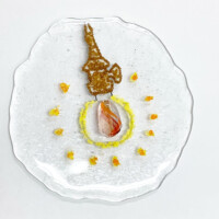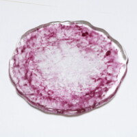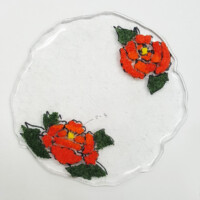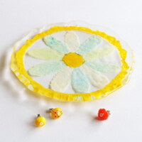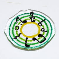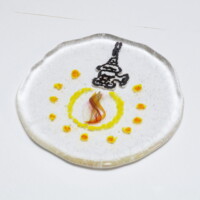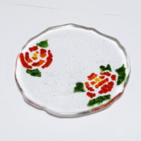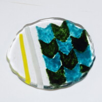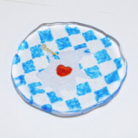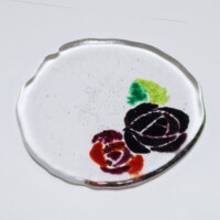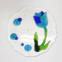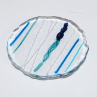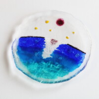 二度目の焼成はその板を陶器のお皿の上にそっと置いて、かなり温度を低めにして焼成することで、表面の溶け具合を変えずに形だけそっと変形させたりしています。